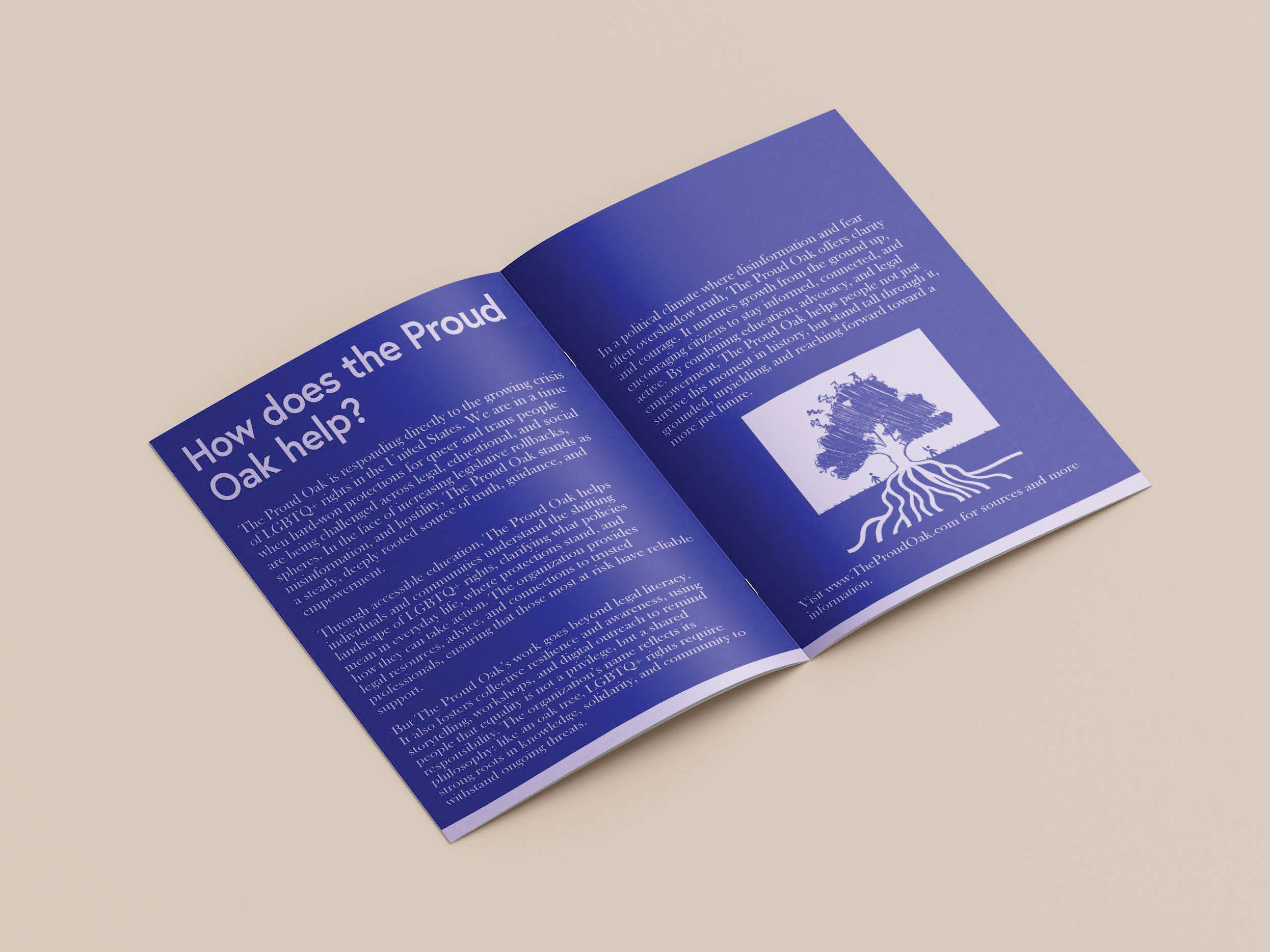 Branding for a proposed non-profit whose purpose is to serve the LGBTQ+ community and preserve their rights as well as provide education. The tree cross-section logo represents the strength and resilience of the community. Deliverables include an educational pamphlet, a postcard advertisement, a website, and an Instagram carousel. Website prototype linked.