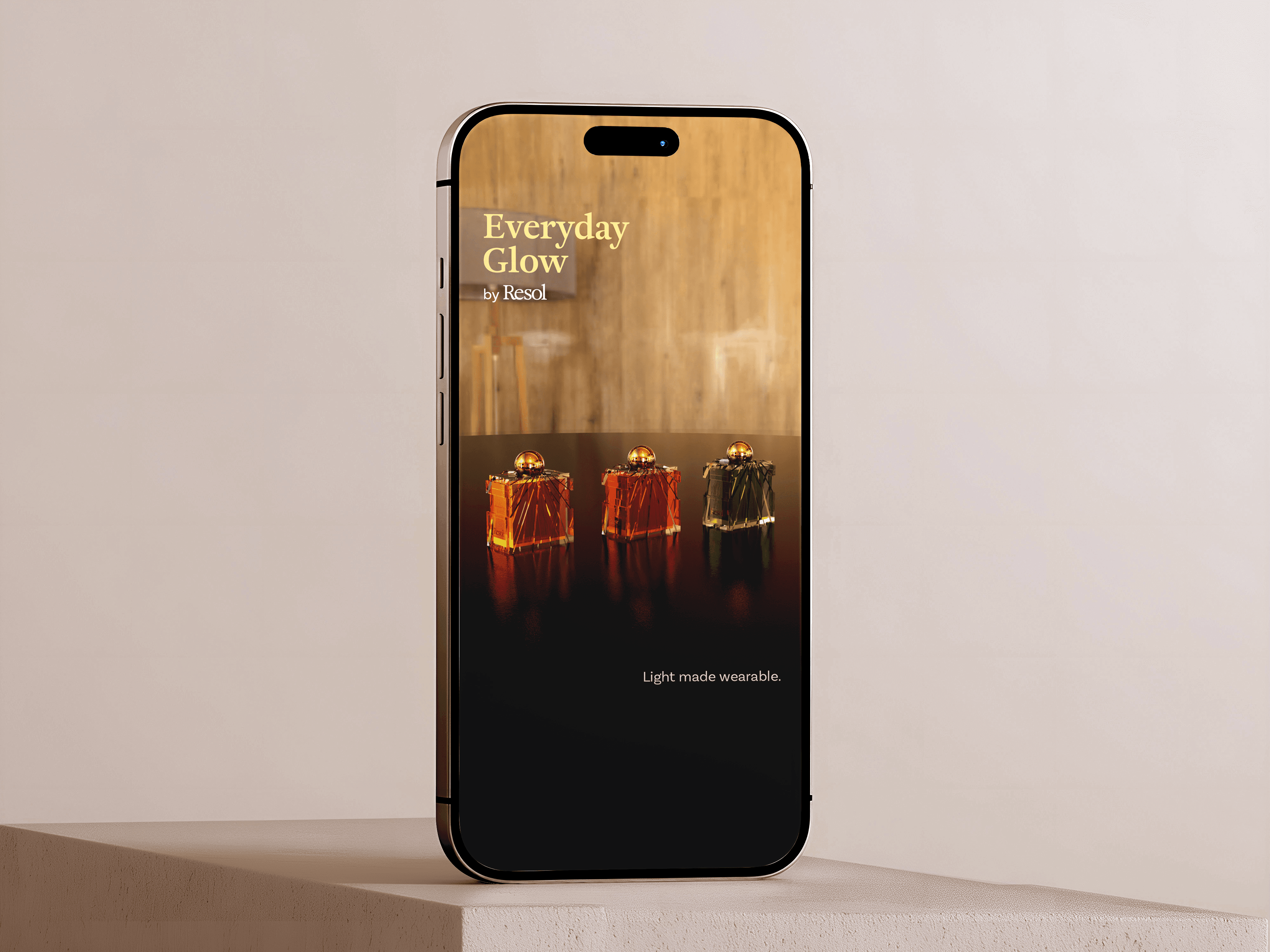 A fragrance brand concept based on the Spanish word "resol," meaning the light that bounces offsurfaces. I designed the brand to have a minimal, clean aesthetic, prioritizing the form of the product itself in delivering the message and concept rather than the packaging or logo. The perfume bottle consists of a spherical golden top representing the sun, and its ray sculpted into the class holding the fragrance itself. Deliverables included a packaging prototype, website prototype, and Instagram story advertisements.